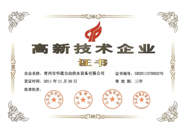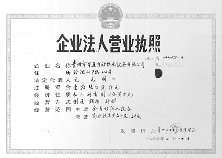 公司前身青州市華通自動供水設(shè)備有限公司正式成立!成立伊始就制定了自主研發(fā),獨立創(chuàng)新的發(fā)展策略;并研發(fā)成功了首臺變頻供水設(shè)備;