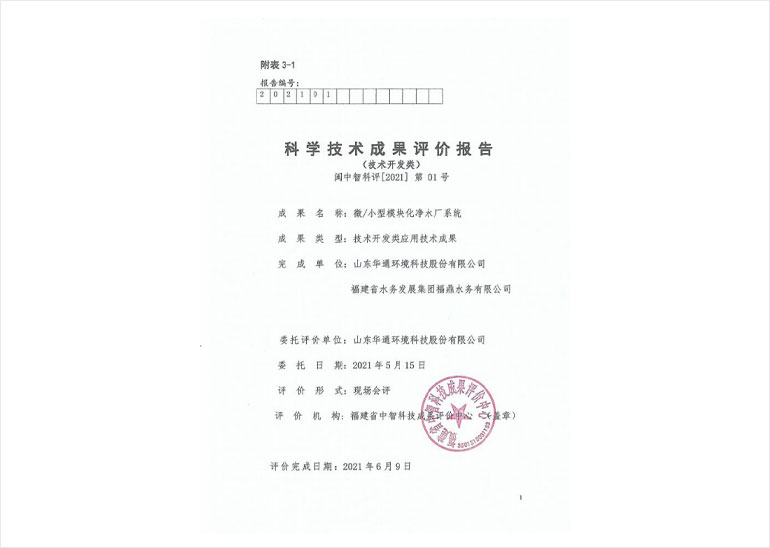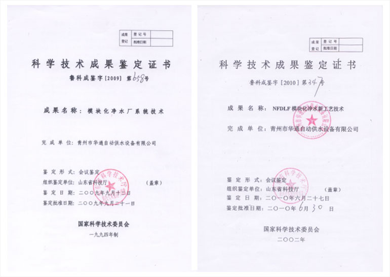 公司自主研發(fā)的“模塊化凈水廠系統(tǒng)技術(shù)”及“NFDLF模塊化凈水新工藝技術(shù)”通過技術(shù)鑒定,其中“模塊化凈水廠系統(tǒng)技術(shù)”的集成技術(shù)及“NFDLF模塊化凈水新工藝技術(shù)”的清水集流系統(tǒng)技術(shù)、斜管沉淀工藝的即時轉(zhuǎn)換技術(shù)、出水控制系統(tǒng)及獨立反沖洗系統(tǒng)技術(shù)均達(dá)到國際領(lǐng)先水平。
