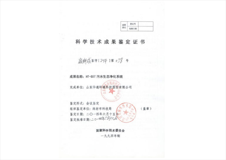 自主研發(fā)的“HT-SST污水生態(tài)凈化系統(tǒng)”通過鑒定達(dá)到國際先進(jìn)水平。