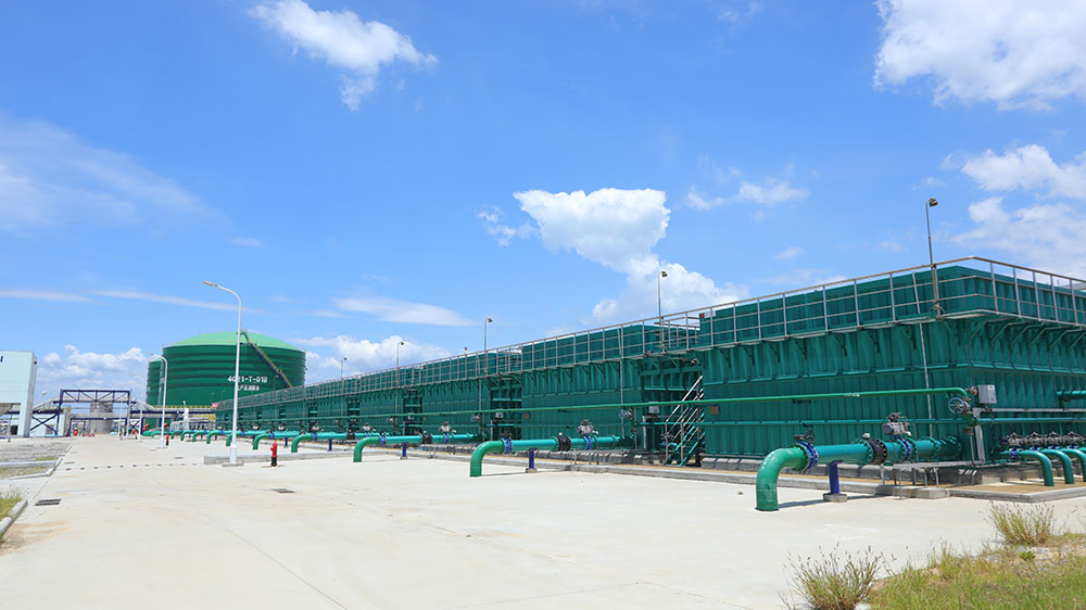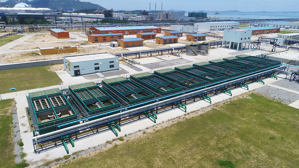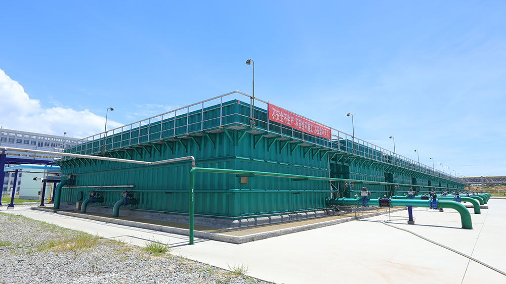 福建漳州古雷煉化一體化項(xiàng)目:位于福建省漳州市古雷半島,建設(shè)規(guī)模10萬(wàn)噸,采用了絮凝、沉淀、過(guò)濾、消毒工藝,原水輸送至凈水廠后,通過(guò)入水管道上的管道混合器投加絮凝劑并進(jìn)行充分混合后,經(jīng)絮凝、沉淀、過(guò)濾后重力流輸送至清水池,通過(guò)傳輸泵將凈化水轉(zhuǎn)輸至生產(chǎn)給水系統(tǒng)。當(dāng)模塊化凈水設(shè)備過(guò)濾水頭損失達(dá)到一定程度時(shí),自動(dòng)開(kāi)啟反沖洗水泵及風(fēng)機(jī),對(duì)凈水設(shè)備進(jìn)行氣水反沖洗。